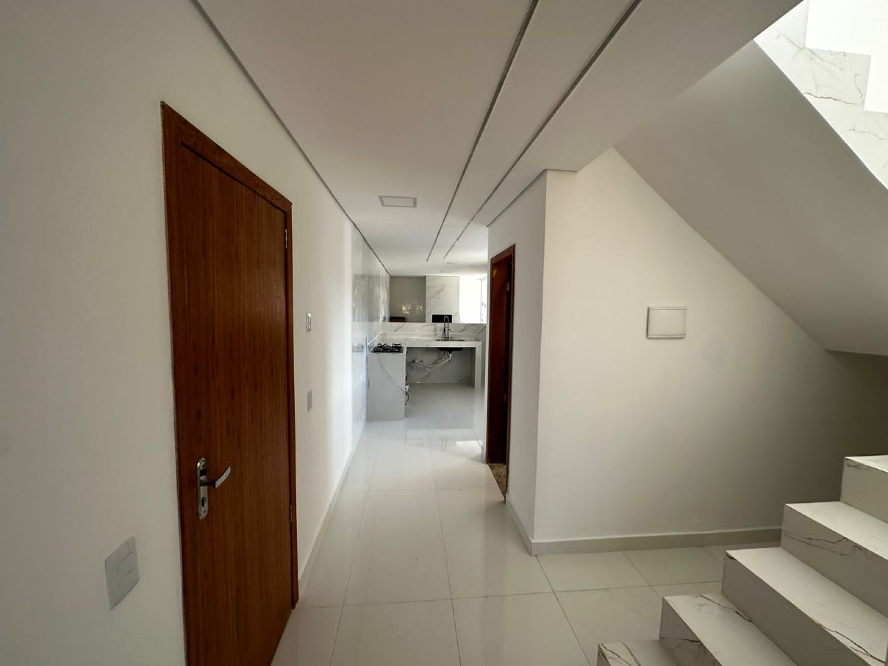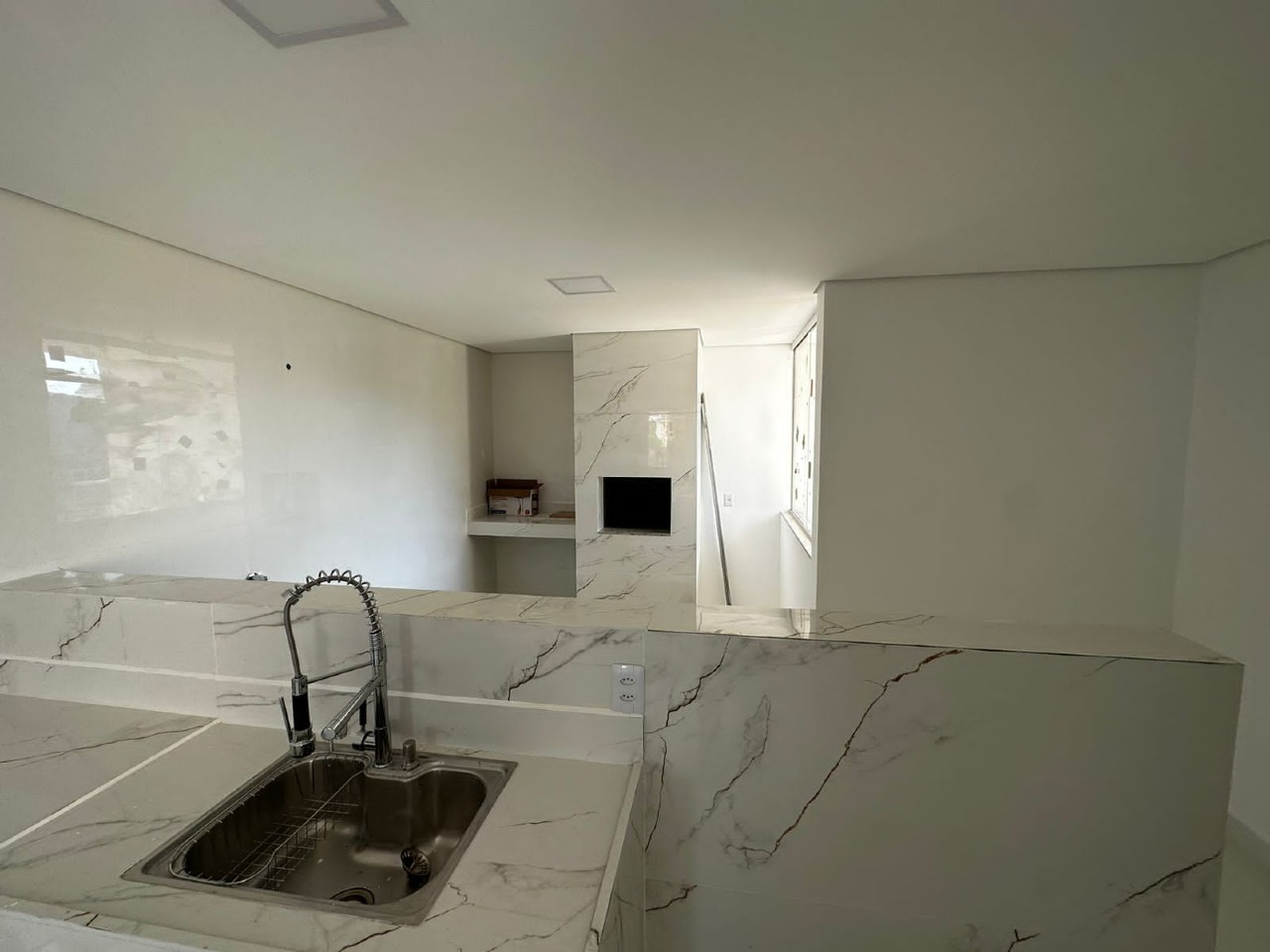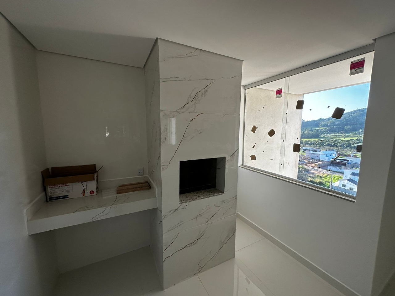 01 quarto, 01 suíte, banheiro social, cozinha com fogão cooktop, sala de jantar/estar, lavanderia, ar condicionado, área de serviço, varanda gourmet, churrasqueira, acabamento em porcelanato, 01 vaga livre na garagem, 03 varandas, água individual, alarme, interfone, portão eletrônico, sol da manhã.
